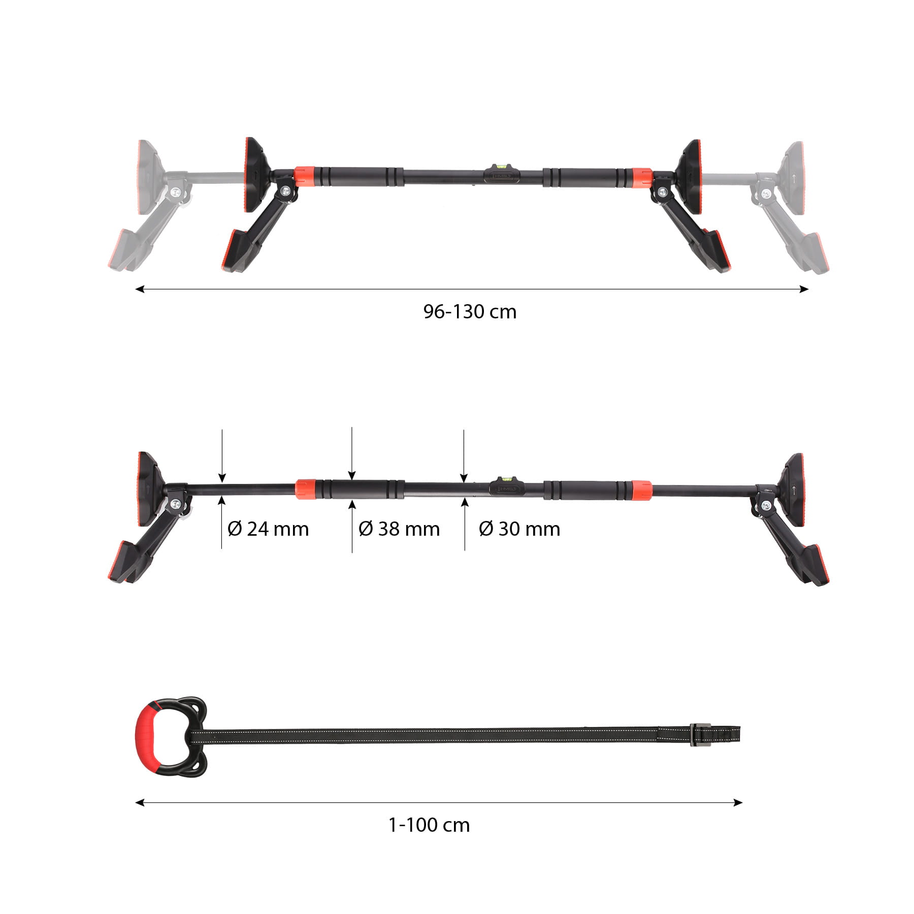 DDG03 jest łatwy w montażu i demontażu, dzięki czemu nie zajmuje dużo miejsca i można go przenosić według własnych potrzeb. Możesz go zamocować między framugami drzwi lub ścianami o szerokości od 96 do 130 cm. Drążek jest wykonany z najwyższej jakości materiałów, został pokryty antypoślizgową powłoką, a podpórki po dwóch stronach zapewnią Ci maksymalne bezpieczeństwo i komfort ćwiczeń. Dzięki poziomicy będziesz mieć pewność, że DDG03 został poprawnie zamontowany.