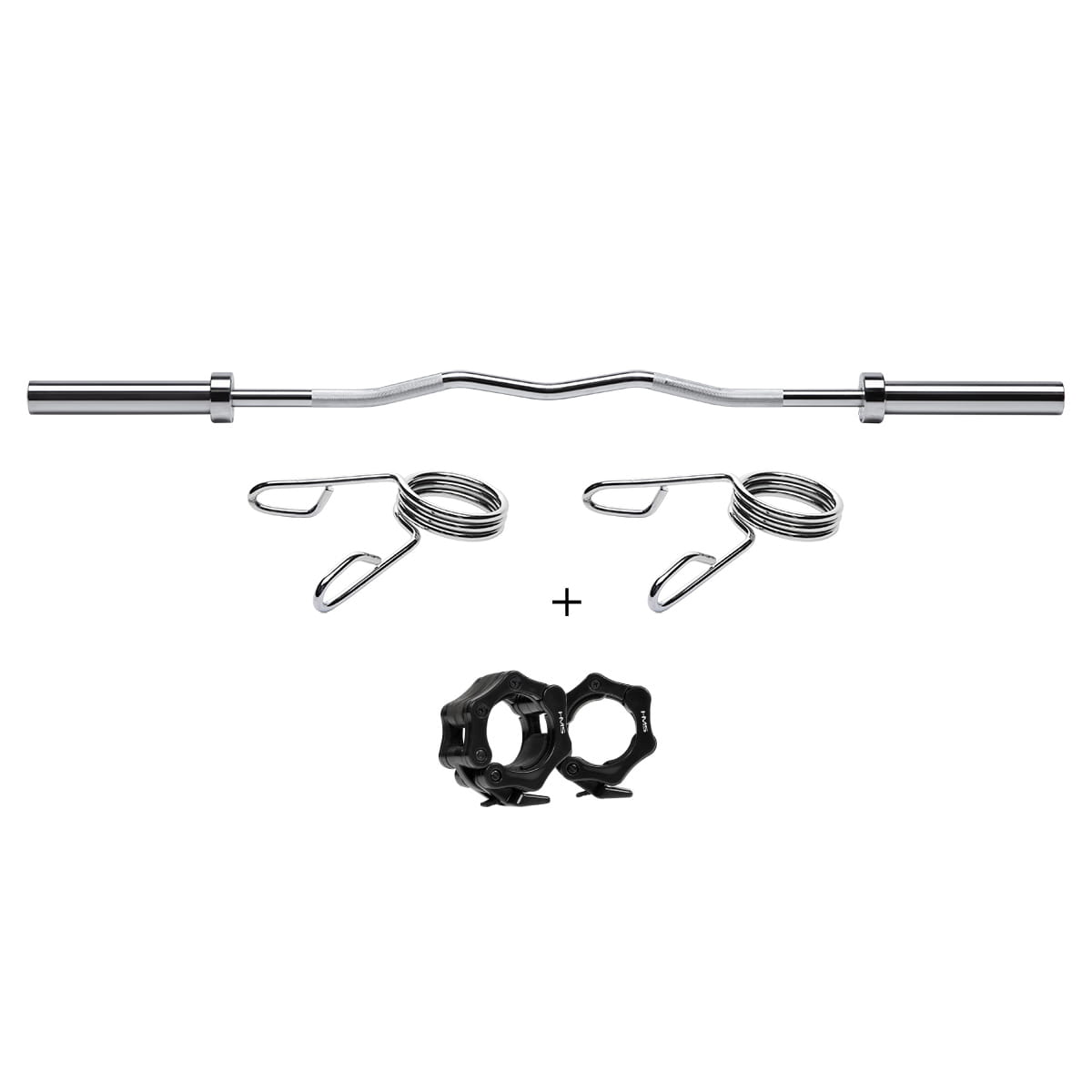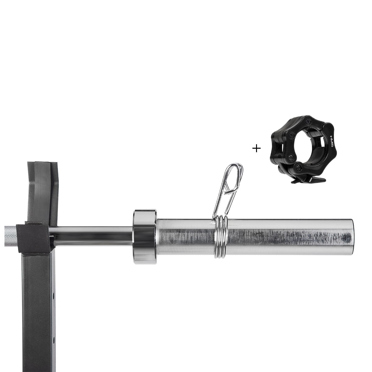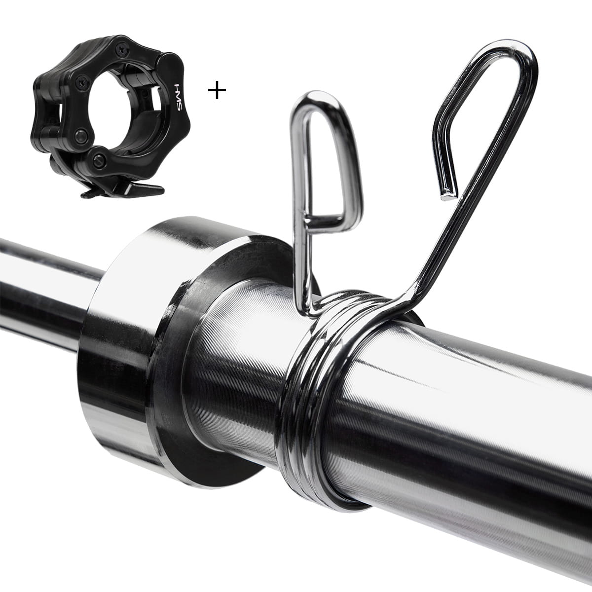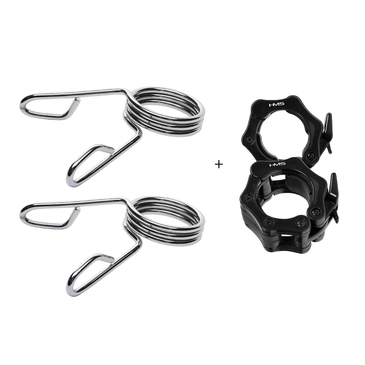 Dwa zaciski sprężynowe znajdujące się w zestawie, gwarantują stabilne położenie ciężaru na gryfie w czasie wykonywania ćwiczeń.