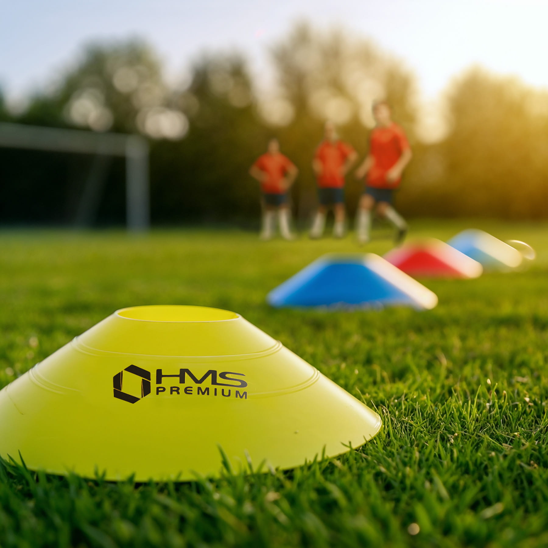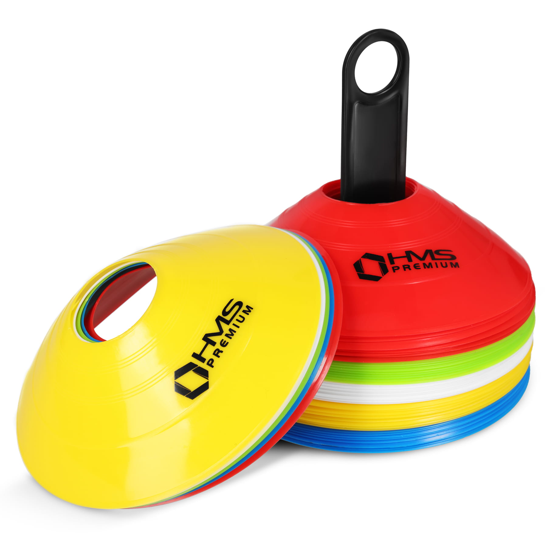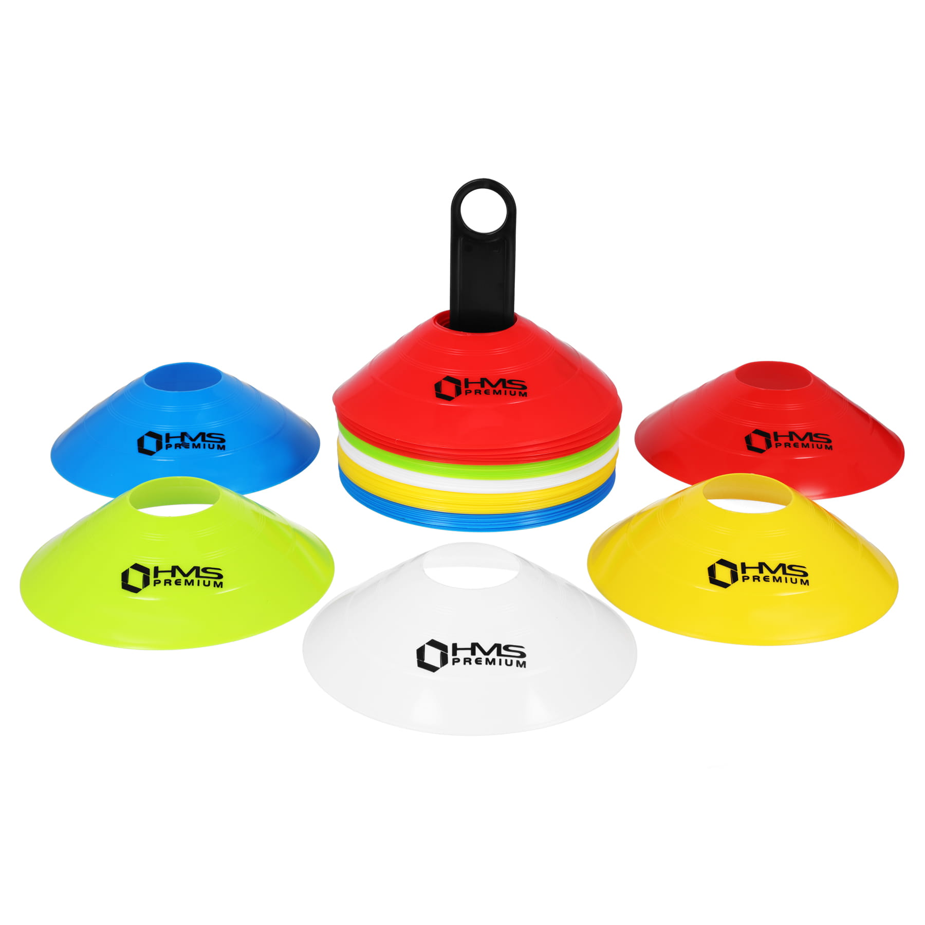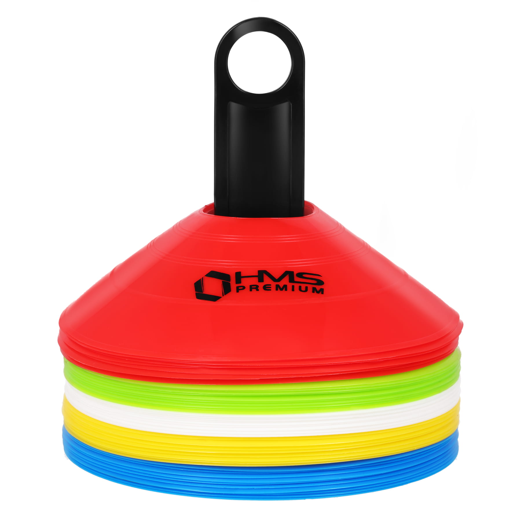 GTR50 HMS PREMIUM to wielokolorowy zestaw 50 grzybków treningowych z praktycznym stojakiem. Ten wielofunkcyjny zestaw sprawdzi się w każdej grze w wielu dyscyplinach sportowych. Idealne dla trenerów gier zespołowych jak również lekkoatletyki. Pachołki mogą służyć do wytyczenia obszaru gry lub zabawy, a także do celów treningowych np. do oznaczenia slalomu. Dodatkowym atutem jest stojak dzięki któremu z łatwością przeniesiemy wszystkie grzybki, a po skończonym treningu spakujemy całość do poręcznego futerału, który również należy do zestawu.