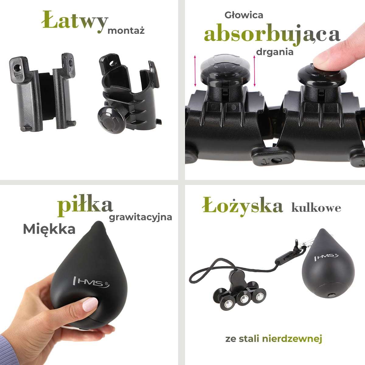 HHW12 HMS Plus Size to regulowany hula-hoop z absorbującymi drgania wypustkami i piłką grawitacyjną do fitnessu. Pozwala na jednoczesny trening i masaż talii 360 stopni. Jest perfekcyjny m.in. do wzmocnienia i ujędrnienia gorsetu mięśniowego. Dzięki regulacji obwodu HHW12 nigdy nie spadnie podczas ćwiczeń, dzięki czemu domowy trening cardio może być długi i przyjemny, co jest gwarancją jeszcze szybszych i lepszych efektów! Urządzenie dedykowane jest zarówno dla dzieci oraz dorosłych.