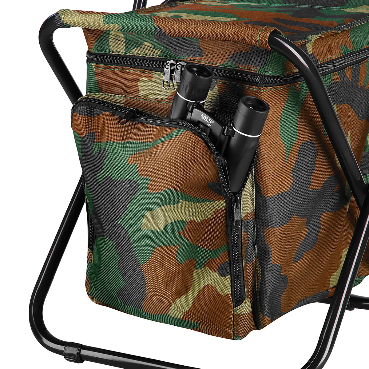 Materiał oxford 600D gwarantuje dużą wytrzymałość na przetarcia i uszkodzenia, natomiast głębokie siedzisko z wygodnym oparciem przekłada się na bardzo wysoki komfort siedzenia. Dopełnieniem jest integralna z krzesłem dolna torba z dwiema kieszeniami, zamykanymi na suwak. Przednia kieszeń jest łatwo dostępna, dlatego przewidziana jest na telefon, okulary przeciwsłoneczne, lornetkę lub inny podręczny sprzęt. Natomiast główna kieszeń bez trudu pomieści napoje, żywność czy turystyczną zastawę.