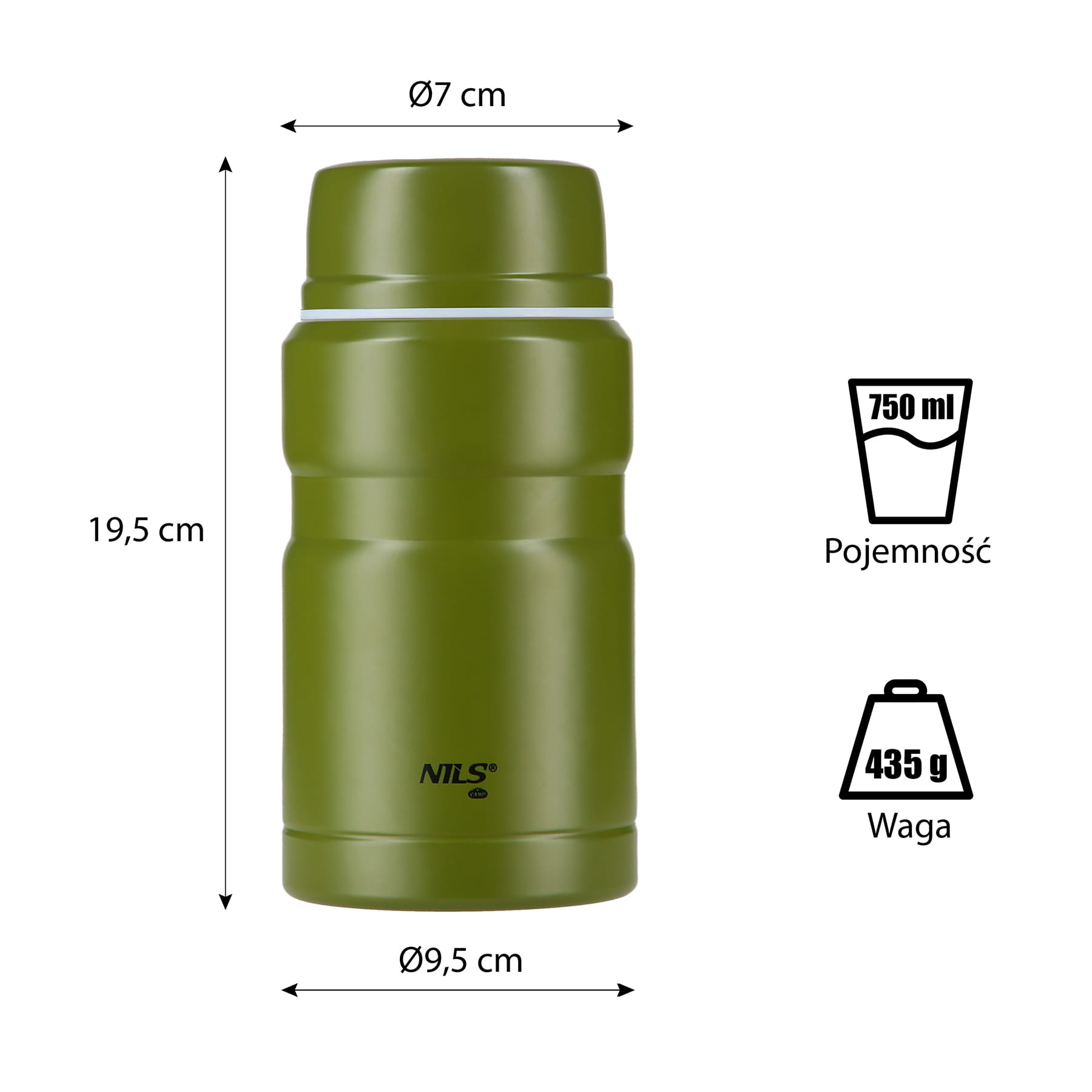 Termos NCT02 marki Nils to perfekcyjne połączenie funkcjonalności, stylu i wygody, które zmieni Twój sposób korzystania z jedzenia oraz napojów podczas wycieczek, kempingu czy pobytu w biurze! Nasz termos cechuje zarówno prosta konstrukcja jak i oryginalny design. Teromos wykonany jest ze stali nierdzewnej o podwójnej ściance, dzięki czemu gwarantuje utrzymanie temperatury ciepłego jedzenia oraz ciepłych napoi przez 12 godzin, a zimnych przez 24 godziny. Dodatkowo NCT02 wyposażony jest w składaną łyżkę, która idealnie mieści się wewnątrz termosu w specjalnie przeznaczonym do tego miejscu. Dodatkowo termos posiada zakrętkę, z która posłużyć jako miseczka lub kubek. Rozpocznij przygodę z termosem NCT02 marki NILS i ciesz się pysznym obiadem lub aromatyczną, gorącą kawą gdziekolwiek jesteś!