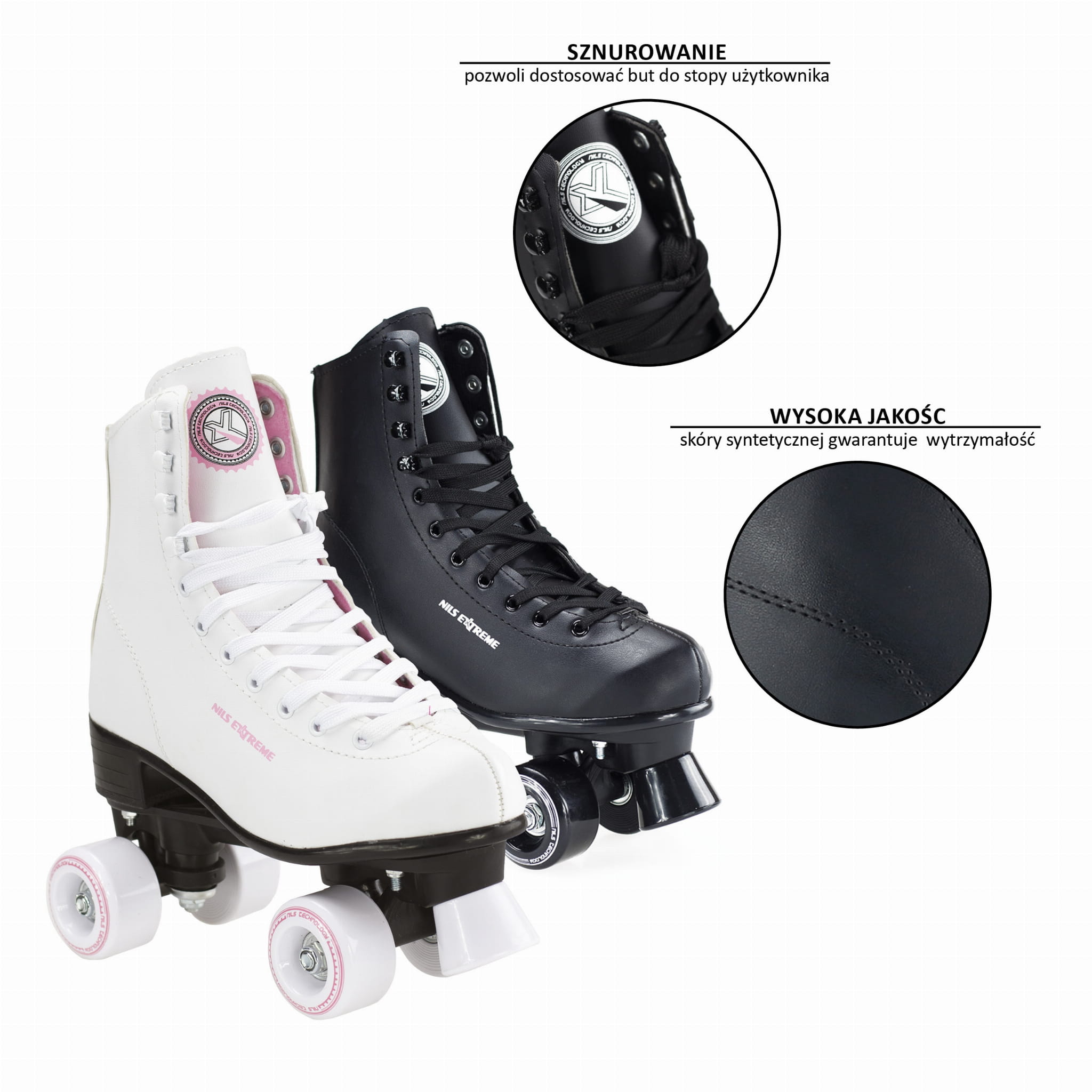 Wrotki NQ8400 Nils Extereme dostępne są w dwóch wersjach - w kolorze czarnym i białym.