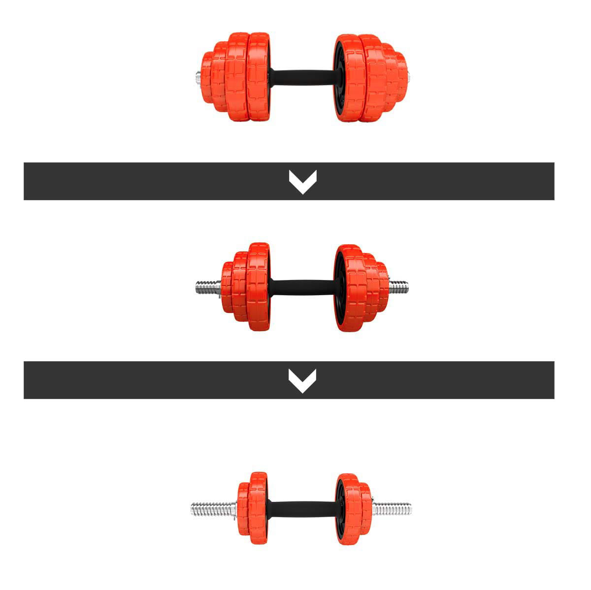 Na rękojeściach sztangielek, również znajduje się guma, która gwarantuje pewny i komfortowy chwyt. Łącznik, przy pomocy którego powstaje sztanga, jest pokryty gąbką, co jest bardzo przydatne np. w trakcie wykonywania przysiadów, ponieważ dzięki nie mu, nie występuje uczucie dyskomfortu powodowane przez ucisk gryfu na plecy.