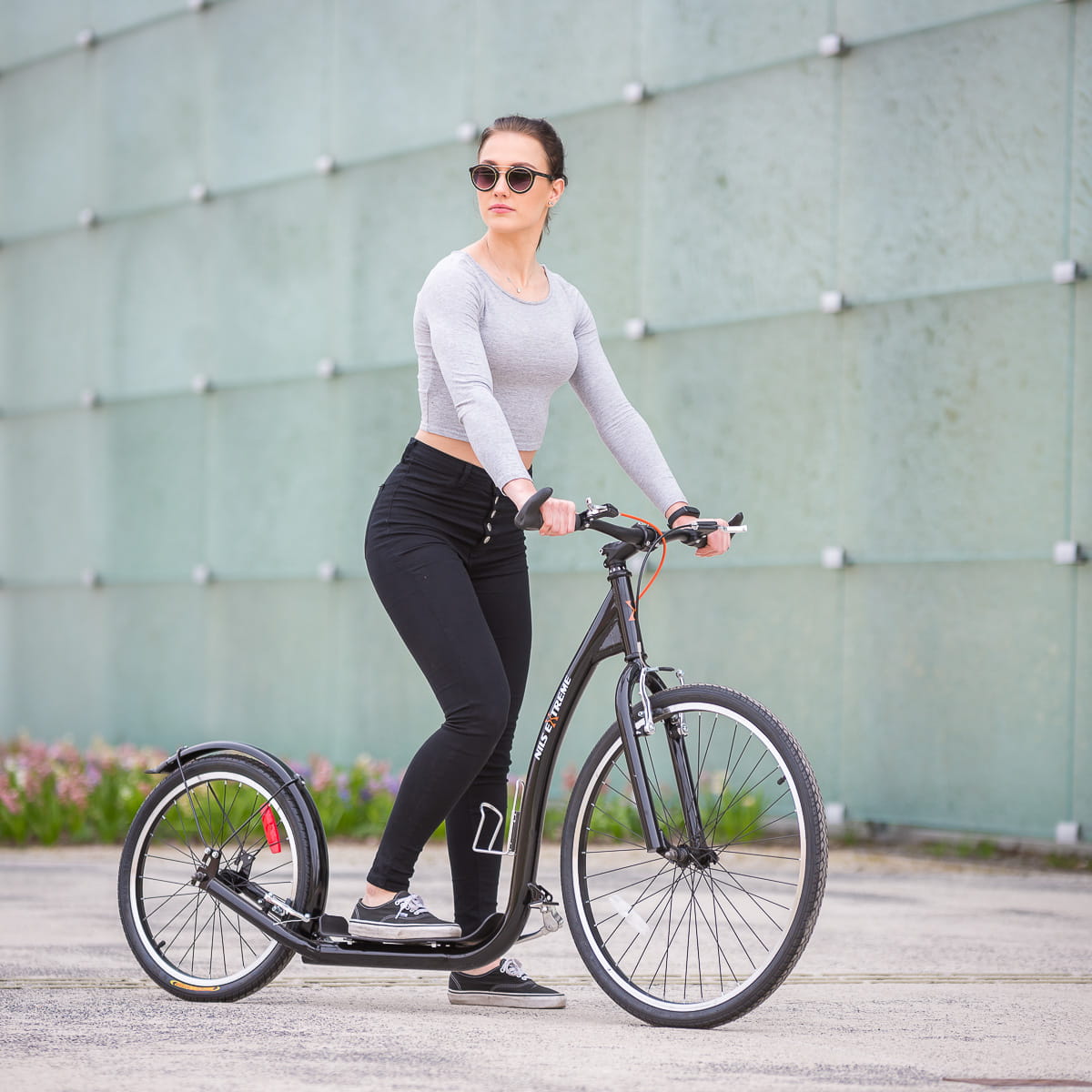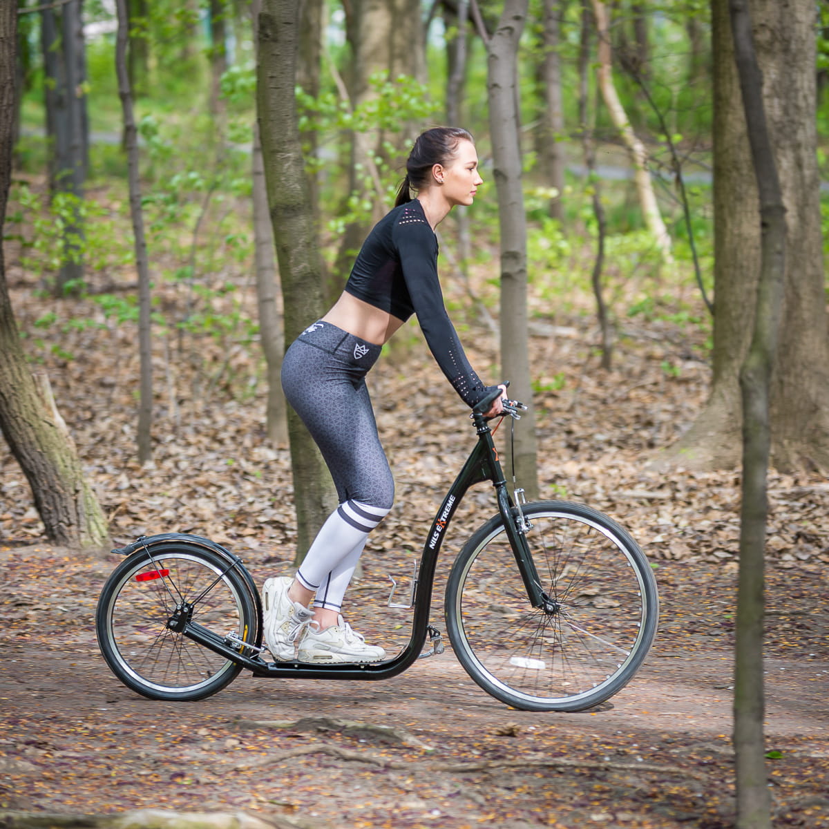 To hulajnoga przeznaczona dla młodzieży oraz dorosłych. Jej bardzo duże pompowane koła sprawiają, że nie trudno pomylić ją z rowerem. Dzięki temu, że średnica kół jest okazała, przednie to aż 26”,jednym odepchnięciem pokonamy spory kawałek. Dodatkowo manewrowanie hulajnogą jest bardzo proste.