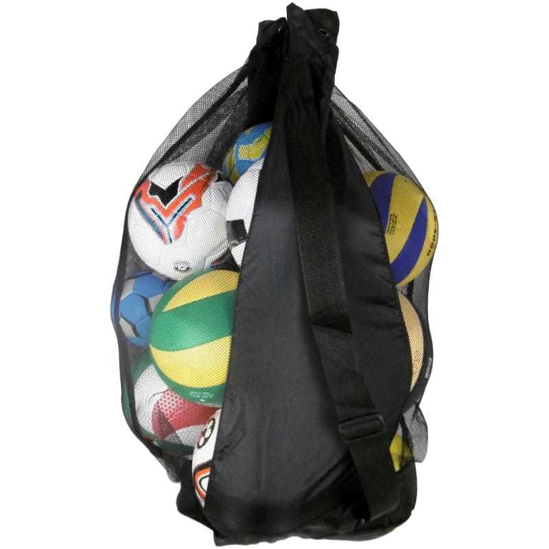 Worek do noszenia piłek sportowych wykonany z mocnego poliestru i siateczki.