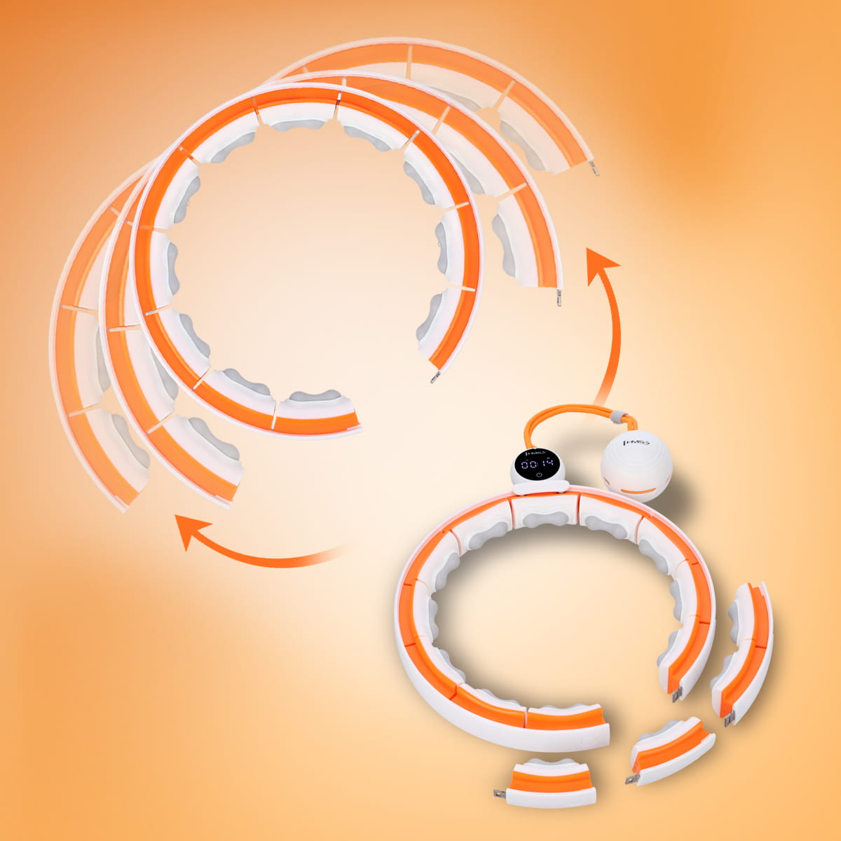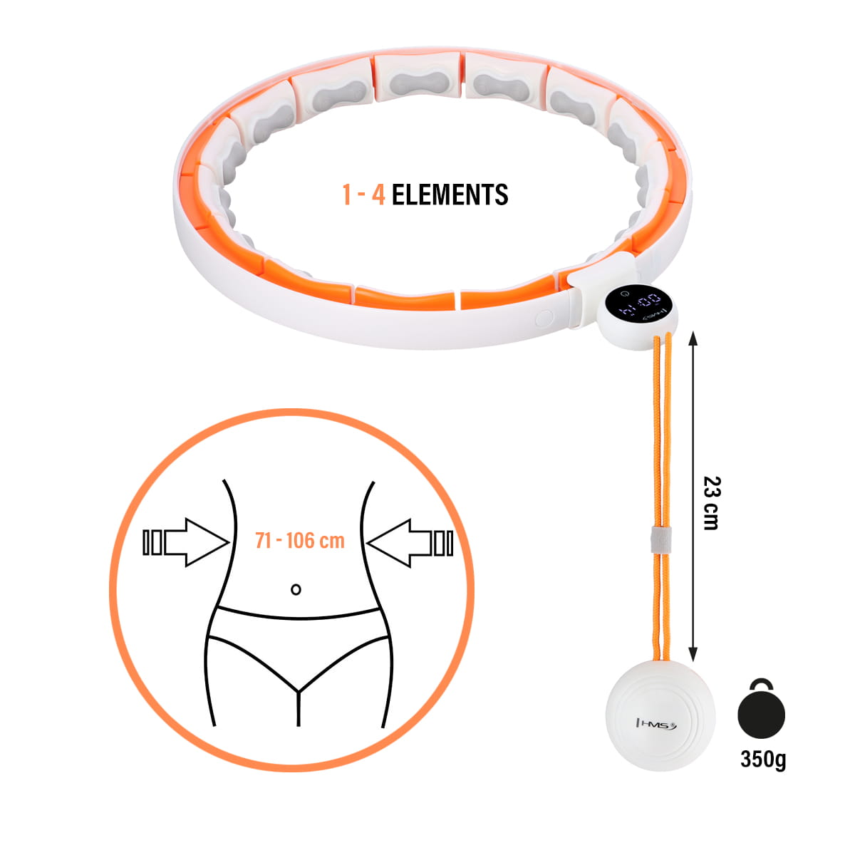 ZESTAW HULA HOP MAGNETYCZNY WHITE/ORANGE HHM21 Z LICZNIKIEM HMS + PAS WYSZCZUPLAJĄCY BR1313
